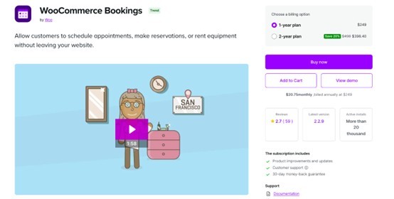 WooCommerce Bookings is the official WooCommerce scheduling plugin that enables stores to offer appointments, classes, tours, or rental bookings. It provides a clean, beginner-friendly interface with native WooCommerce compatibility, making it ideal for simple booking use cases.
