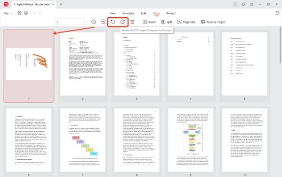 Rotate pages: Use the rotate icons (90°, 180°, etc.) to adjust the orientation of individual pages or all pages at once